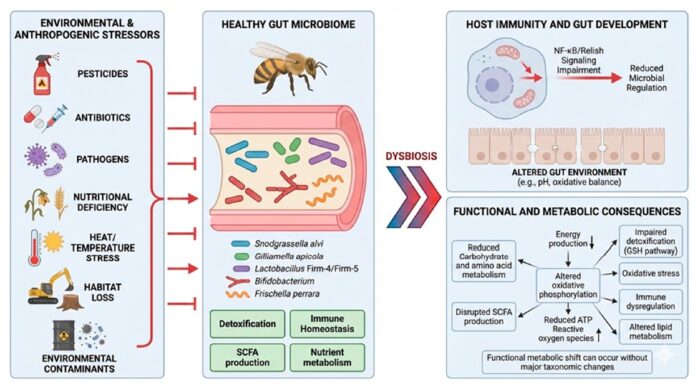 How Environmental and Ecological Stressors Reprogram Honey Bee Chemistry Through the Microbiome – Metabolome Axis